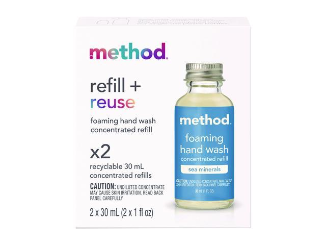 Method Refill + Reuse Foaming Hand Soap Refill, Sea Minerals, 1 oz Refill Bottle, 2/Pack (356009)