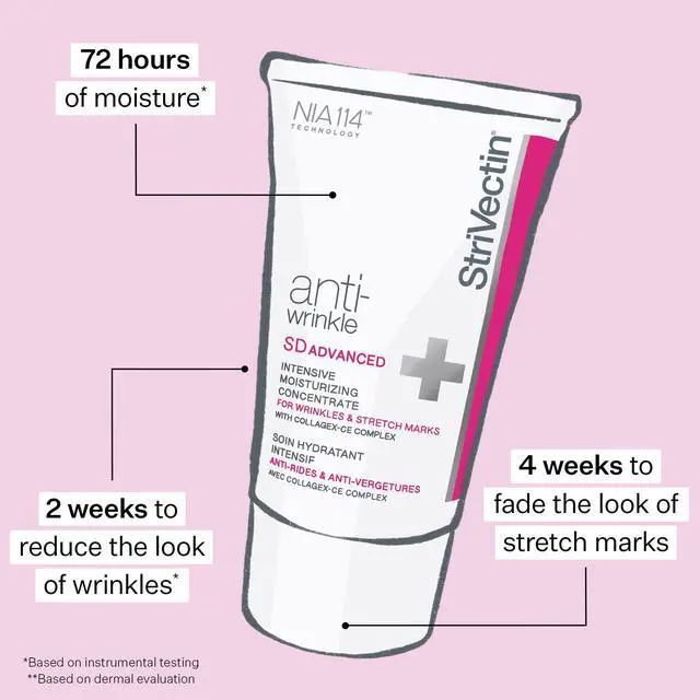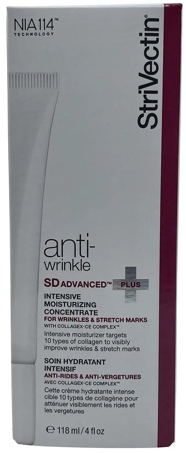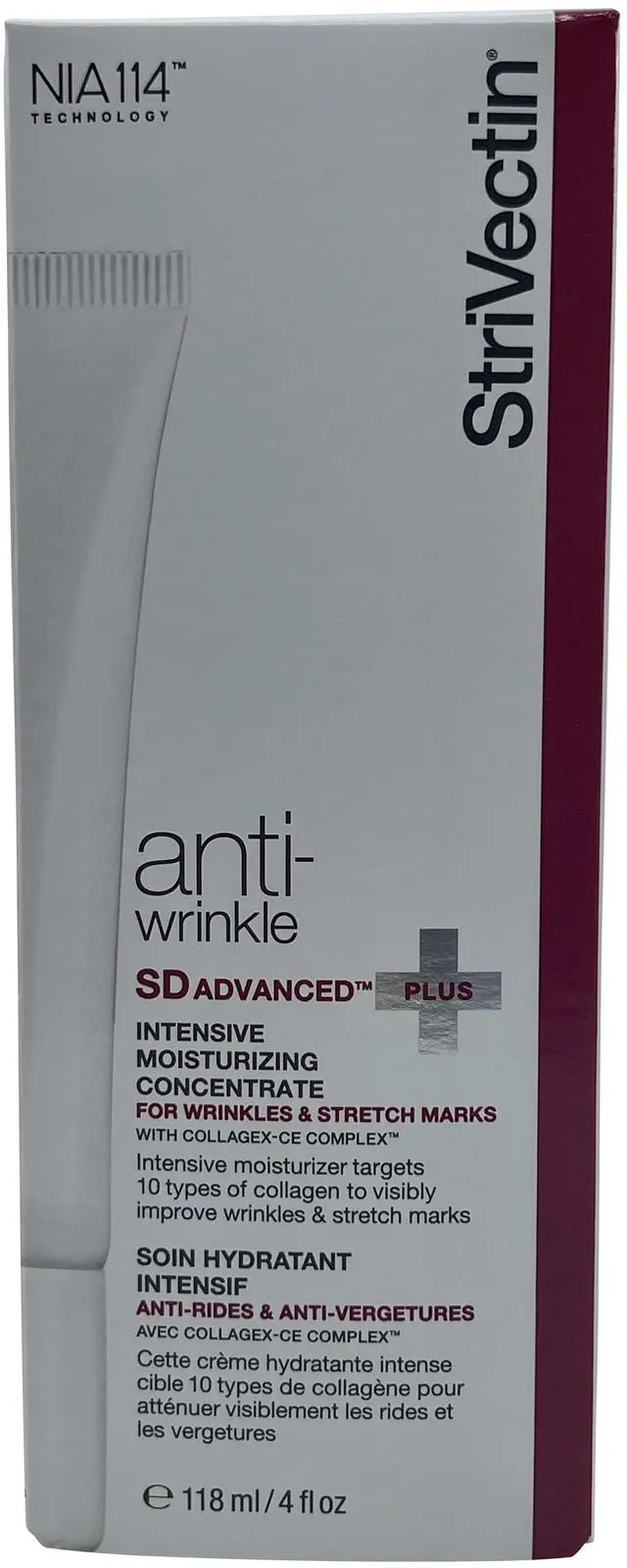 StriVectin Anti-Wrinkle SD Advanced PLUS Intensive Moisturizing Concentrate is a moisture rich, anti wrinkle and anti cellulite formula. Can be used on the face and the body. Helps to visibly reduce wrinkles and stretch marks. Provides optimal moisture for up to 72 hours. Recommended for all skin types. To be applied both morning and night for best results.
