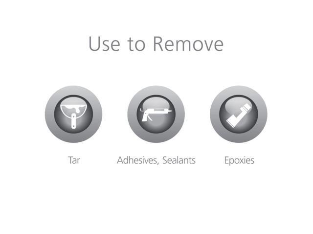 Removes most ink, sticky soils and adhesives.