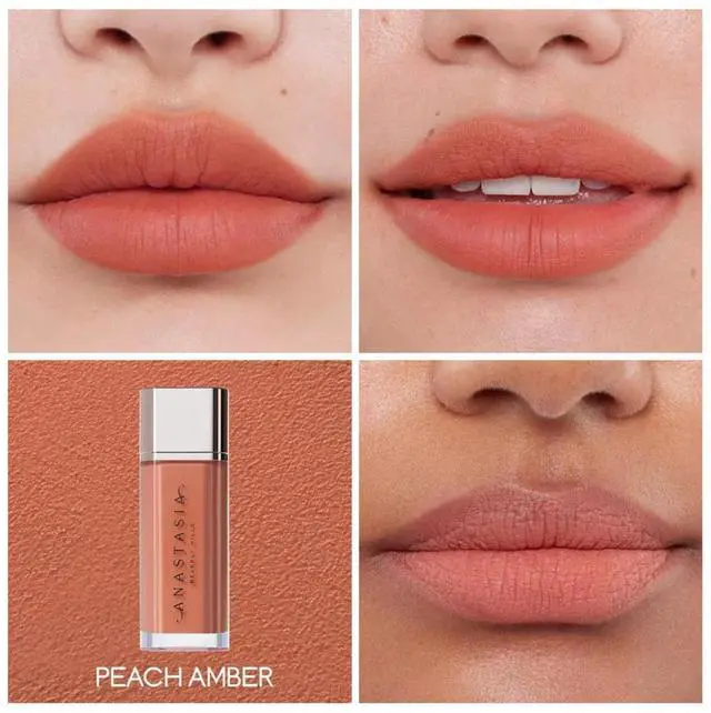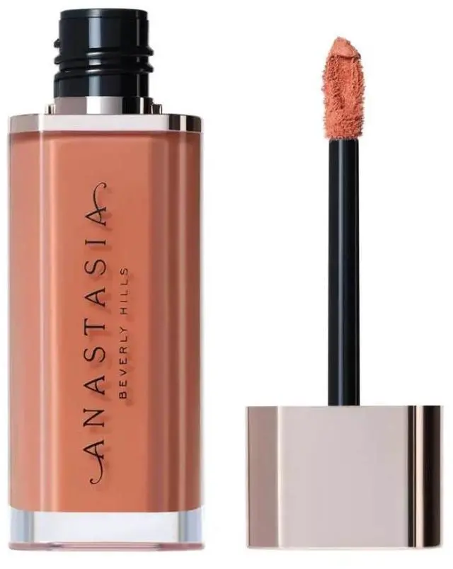 Anastasia Beverly Hills Lip Velvet, a velvet-smooth lip mousse with weightless, full pigment, true-matte color, cushioned, comfortable wear and a smoothing lip finish that allows you to line and apply with a multifunctional, teardrop-shaped cushioned wand.