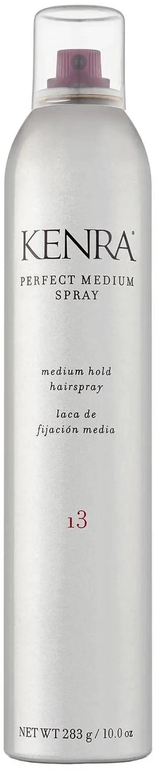 Kenra Perfect Medium Spray provides optimum styling control without stiffness. This fast drying formula gives a touchable, moveable, brush-through hold complete with a high shine finish. UPC NO:014926166108 SKU:ADIB003HN0S4A