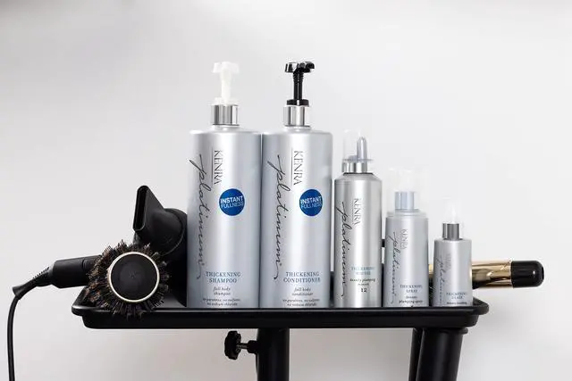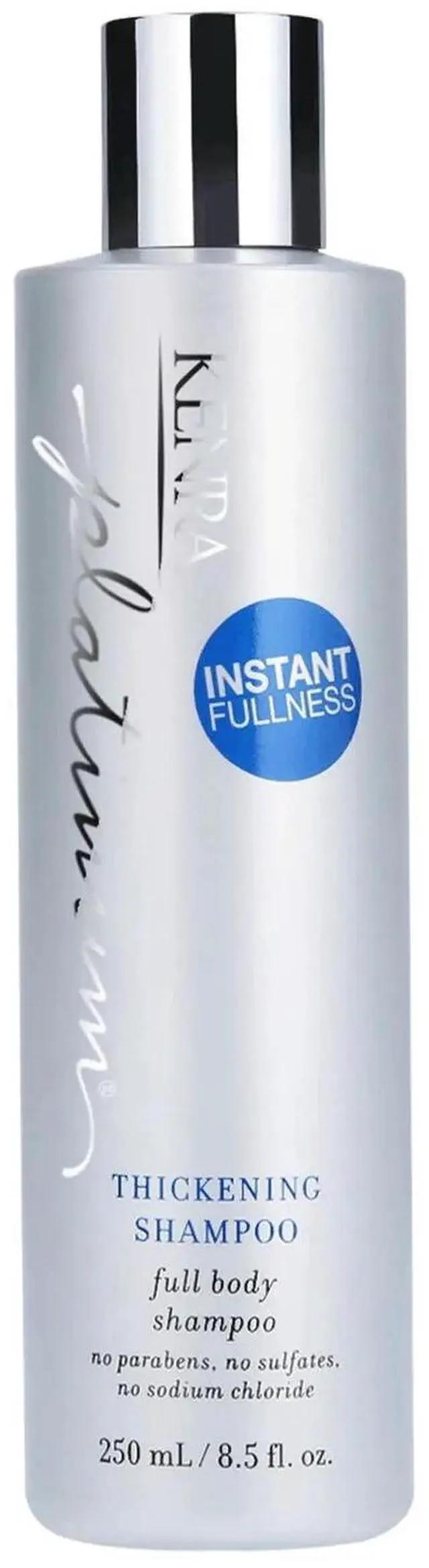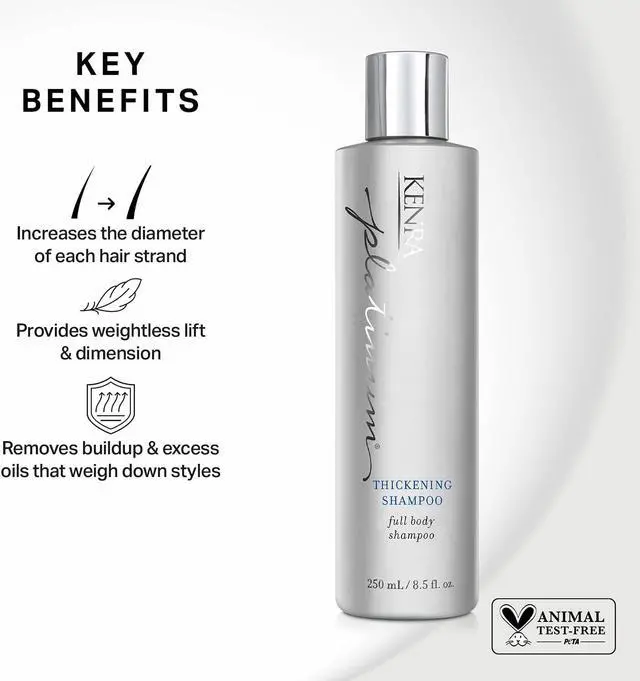 The Platinum thickening shampoo is a gentle cleanser that increases diameter of the hairs while eliminating build-up and excess oils that can weigh down styles.