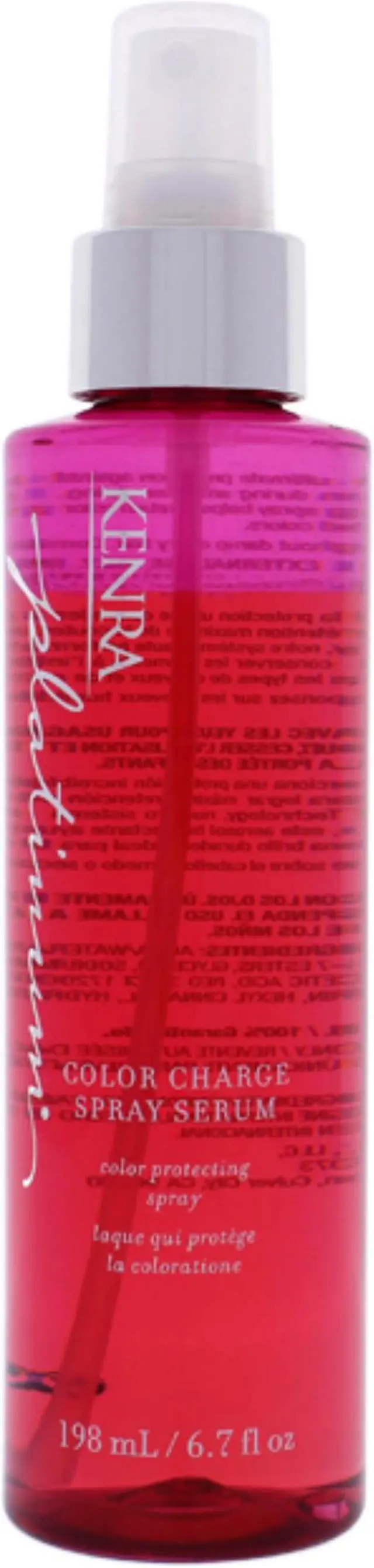 Color Charge Spray Serum provides ultimate protection against environmental stressors and heat up to 450F -for maximum color retention during and after styling. Enriched with high-performance Fade-Fighting Technology, this moisturizing spray helps to retain color pigments inside the cuticle for long lasting brilliance. Ideal for all hair types and colors.