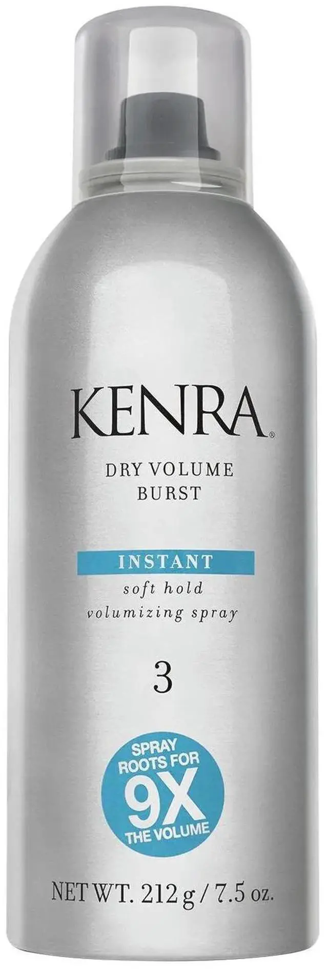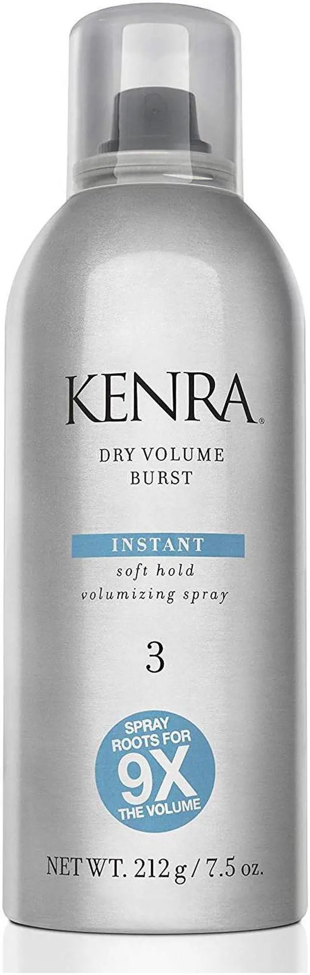Kenra Dry volume burst 3 delivers up to 9 times the volume from roots to ends with a dry application for instant results. This superior soft hold volumizing Spray is ideal for creating styles with volume, body, and tousled texture.