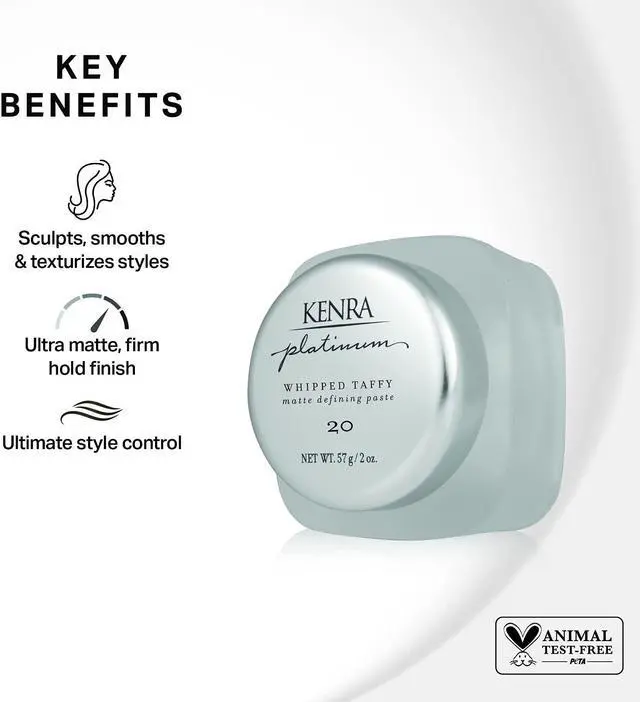 Whipped Taffy 20 provides an airy, high-hold matte finish. Sculpt, smooth or texturize any style without adding weight with a whipped souffle texture.