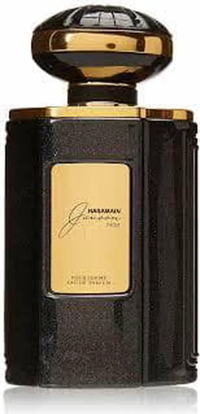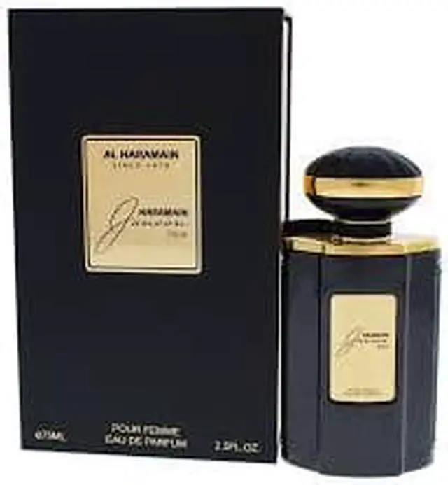 First launched in 2016 Al Haramain Junoon Noir layers mesmerizing fresh and exotic florals over seductive accords of wood and musk. Intoxicating jasmine banana-toned ylang-ylang and powdery clean red rose open the fragrance. Heady jasmine and rose notes persist and deepen at the heart joined by earthy elegant orris root iris and the sweet tobacco nuances of tonka bean.