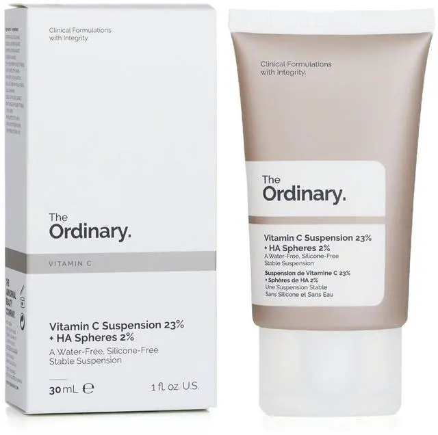 Vitamin C Suspension 23% in HA Spheres uses direct vitamin C and hyaluronic acid to help visibly reduce signs of aging by brightening and balancing uneven skin tone. This water-free formula provides 23% pure L-Ascorbic Acid which remains completely stable due to the absence of water. Whats more, this water-free formula is supported with spheres of hyaluronic acid for added hydration.