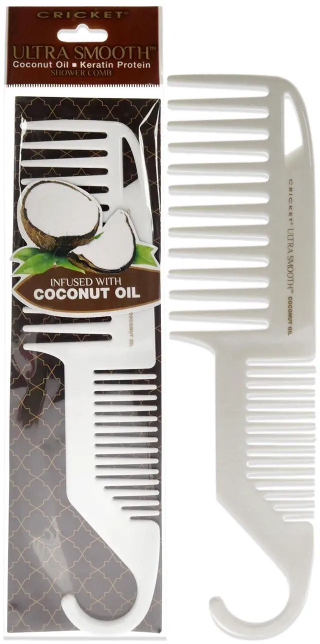Ultra Smooth Coconut Shower Comb by Cricket When you shampoo your hair, it depletes moisture from the hair. The Cricket Ultra Smooth Coconut Shower Comb helps condition and detangle wet hair. It restores moisture by maximizing the conditioning in your hair. An innovative collection of combs created with a special blend of Coconut oil and Keratin protein infused plastic. This hair conditioning comb moisturizes hair and softens the strands, making it easier to remove any knots and tangles. Helps Add Shine And Smoothness To Hair Coconut oil hydrates hair from the roots to the ends while keeping it soft and manageable.