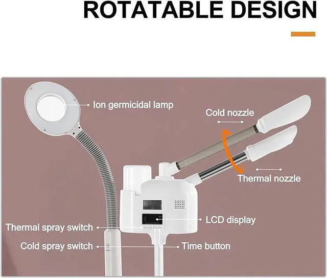 Easy To Use - Facial steamer machine with 4-leg wheeled stable stand base that allows you to move around in the salon freely. Flexible arm can rotate left and right with 360 degrees and flip up and down 180 degrees. High adjustable from 37"-45"/40"-48".