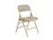 The National Public Seating 2300 Series steel frame upholstered premium fabric seat and back folding chair has a beige 18 gauge, 7/8" tubular steel "Y-frame" structure, cafe beige upholstered fabric seat and backrest, three double-riveted leg cross braces, double hinges on each side, and it folds for efficient storage when not in use. This chair meets the American National Standards Institute/Business & Institutional Furniture Manufacturers Association (ANSI/BIFMA) standard for drop weight support of 300 lb., and it supports 480 lb. of static weight. It has three double-riveted leg cross braces (two on the back legs, one on the front), and double hinges on each side for stability.