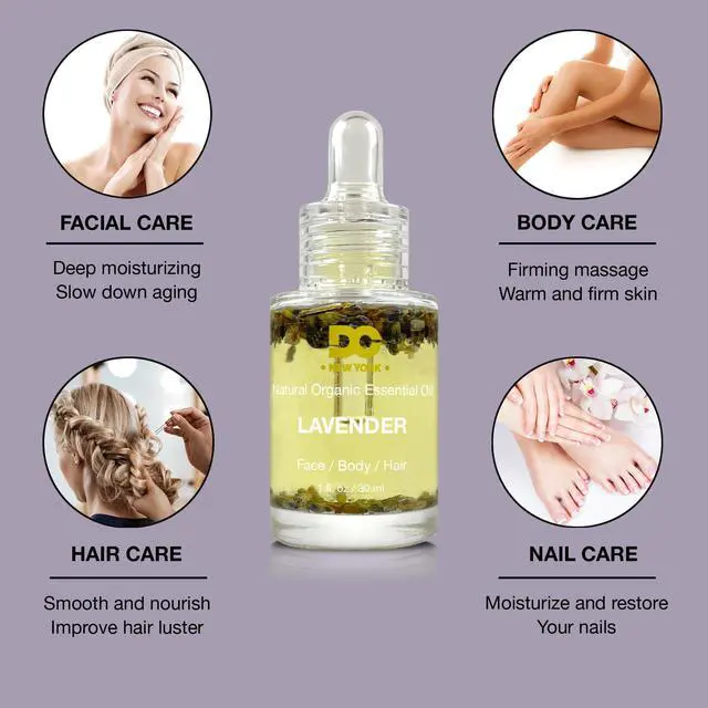 100% pure plant-derived Lavender multi-use oil contains the moisturizing essence of Jojoba Oil, Coconut Oil and Grape Seed Oil without any chemical additives. It is suitable for any skin and can be used directly on the skin, which is convenient to use and easier to absorb. Our Organic Lavender essential oil is extracted from Lavender plant. Lavender oil It can detoxifies, cleanse the skin, control oil content, remove freckles, reduces the appearance of wrinkles, rejuvenates the skin, promotes the regeneration and recovery of damaged tissues. Lavender essential oil also has a calming effect is very helpful for insomnia.