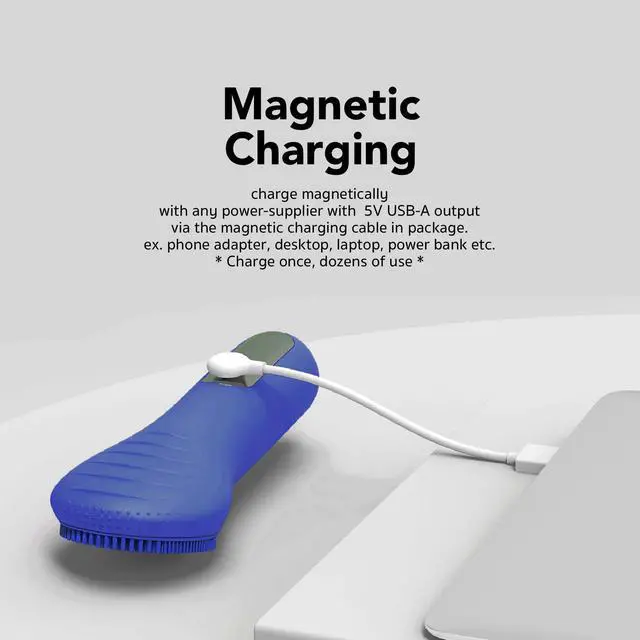 Please make sure all the charging points are dry before charging. Connect the face brush with an adapter via the charging cable in box, plug the adapter into socket. The indicator light flashes during charging, and keeps solid on once finished.