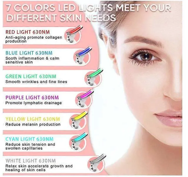 - 7 customizable color modes for anti-aging, jawline contouring, and pore cleansing