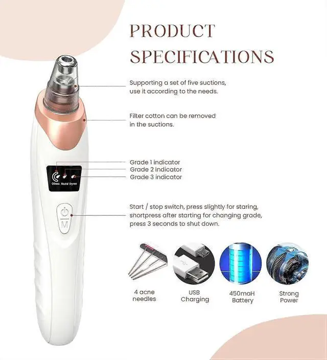 5 adjustable suction levels cater to all skin types (sensitive, normal, oily)