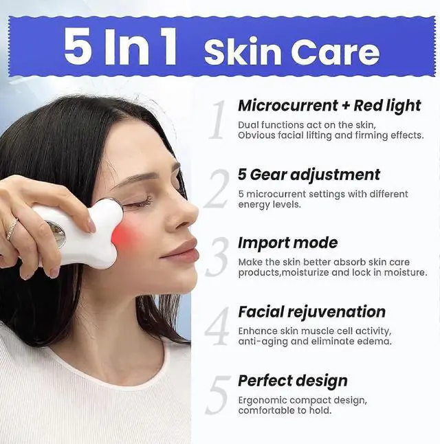 & Red Light Therapy**: Combines microcurrent to slow aging, boost circulation, and reduce wrinkles with red light to enhance skincare absorption and skin tightening.