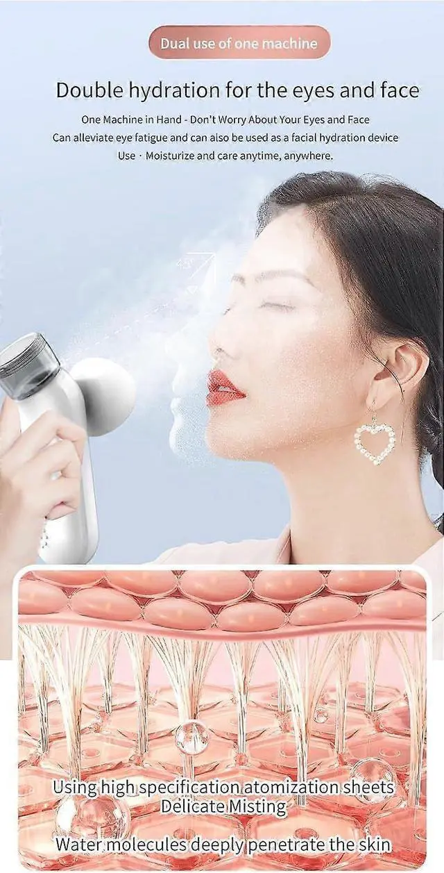 **Nanoscale Atomized Steam**: Delivers intense moisture to eyes and face without disturbing makeup.