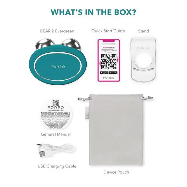 SWEDISH ROUTINE For optimal results, combine the BEAR 2 face sculpting tool with the conductive FOREO SUPERCHARGED Serum 2.0 proven to increase type 1 collagen production.