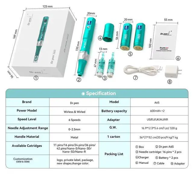 Derma Pen A6S ( Each Pen Contains 2PCS 16 Pins )