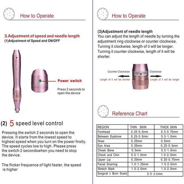 5 speed one touch control So easy to operate with the one touch button, making the M7 a great choice for Microneeding at home