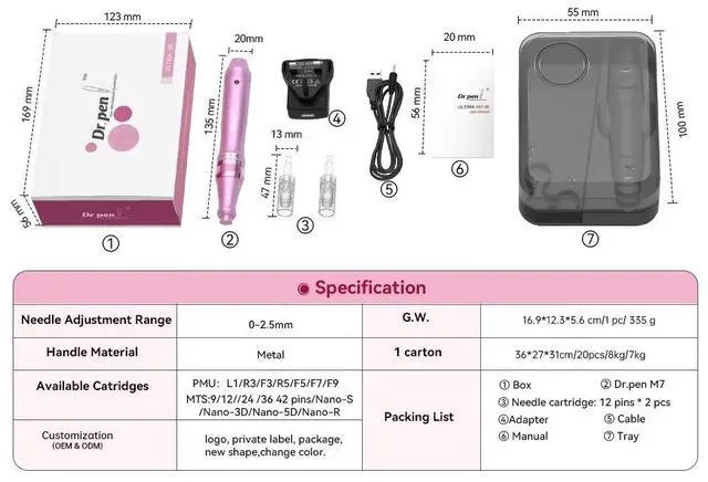 Dr Pen M7 micro needling device can improve skin elasticity, reduce wrinkles and fine lines.