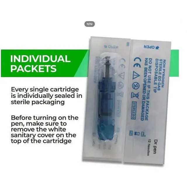 12 Pins: Needles made of 304 stainless steel, suitable for improving acne scars, fading pitted scars, repairing depressed scars and fading stretch marks.
