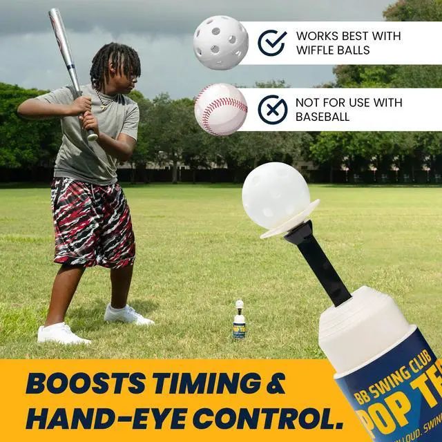 BB Swing Club Pop Tee, Pop-Up Baseball Trainer for Hitting Practice, Pop Tee Training Equipment with Ball Launcher Action, Skill Development Tool for Timing, Contact, and Swing Mechanics