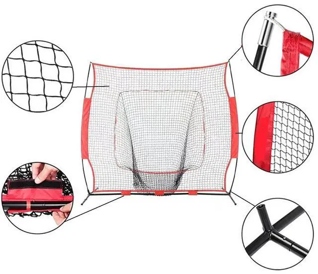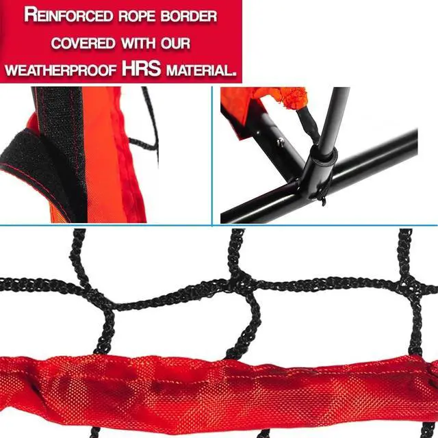 Solid Sturdy ConstructionMade of powder coated steel frame with robust thicker and tear resistant polyester net increase greater stability when batting and pitching into the net, which can withstand years, each leg has rubber feet for added stability.