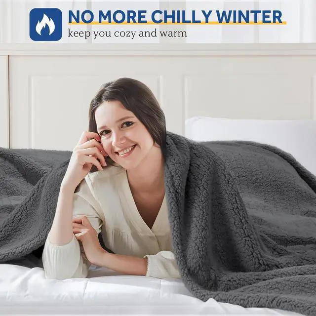 PREMIUM MATERIALMade of double layered 240gsm Sherpa and high-quality heating elements, the electric blanket creates a soft, luxurious feel, providing a cozy and comfortable sleeping experience, allowing you to stay cozy and warm even on the coldest winter nights. Full size 80x84in, make sure you are covered softly and comfortably.