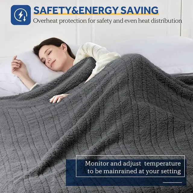 ENERGY EFFICIENTWith 10 fast heating settings(95°F - 113°F) controlled by one button and 1-12 hours auto-off, the electric blankets are designed to be energy efficient, using minimal energy while still providing effective warmth. This makes them an eco-friendly choice for those who want to reduce their carbon footprint.