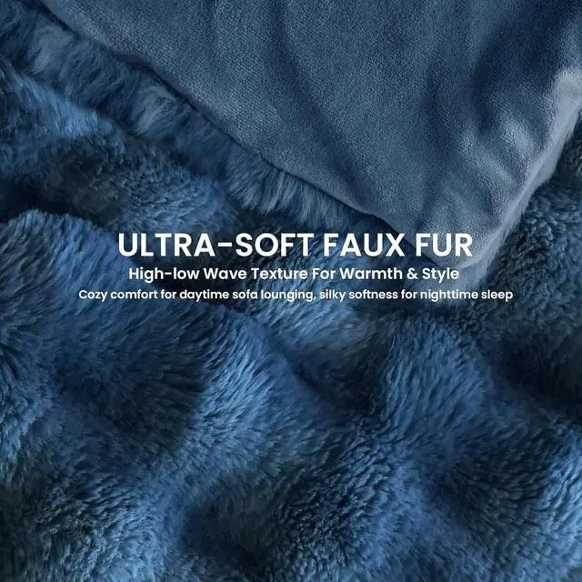LUXURIOUSLY SOFT & FUNCTIONAL Plush Faux Rabbit Fur & Velvet: Crafted with 450gsm wave-textured faux rabbit fur, this blanket offers a luxurious, cloud-like appearance while creating fluffy air pockets that trap warmth and effectively prevent heat loss. On the reverse, 190gsm velvet provides a silky-smooth, skin-friendly touch, helping the blanket deliver comforting warmth to your body more quickly. The dual-fabric design blends elegant style with practical performance, making it both a chic décor accent and a reliable source of cozy comfort through every season.