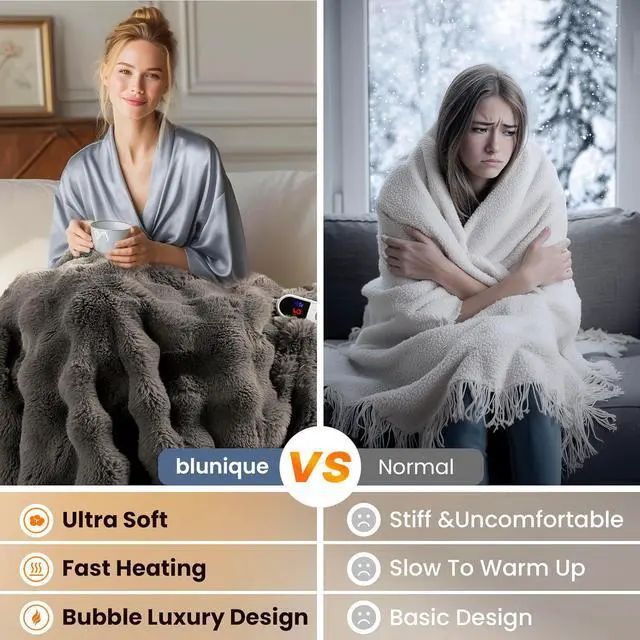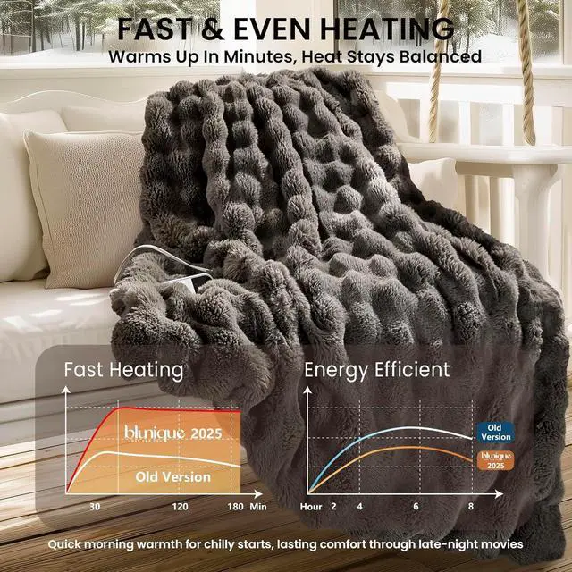EASY CARE & GIFT-READY Practical Luxury for Loved Ones: Detach the controller and machine wash to keep it fresh and fluffy. The energy-efficient design helps lower winter heating costs, and the elegant packaging makes it a thoughtful gift for friends, parents, or anyone who loves to stay cozy and stylish all year long.