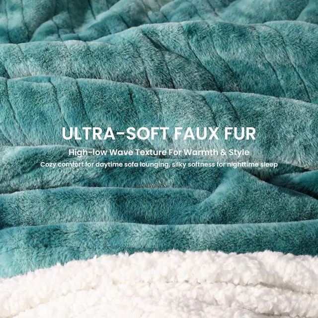 LUXURIOUSLY SOFT & FUNCTIONAL Plush Faux Rabbit Fur & Velvet: Crafted with 450gsm wave-textured faux rabbit fur, this blanket offers a luxurious, cloud-like appearance while creating fluffy air pockets that trap warmth and effectively prevent heat loss. On the reverse, 190gsm velvet provides a silky-smooth, skin-friendly touch, helping the blanket deliver comforting warmth to your body more quickly. The dual-fabric design blends elegant style with practical performance, making it both a chic décor accent and a reliable source of cozy comfort through every season.
