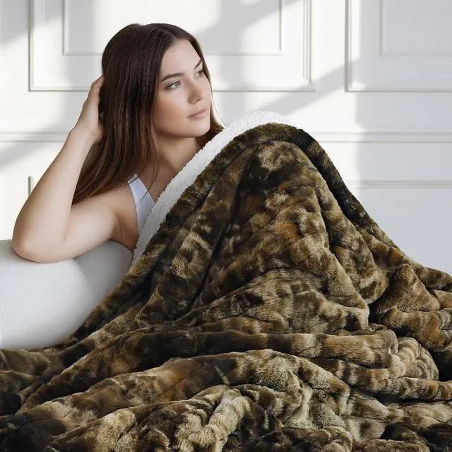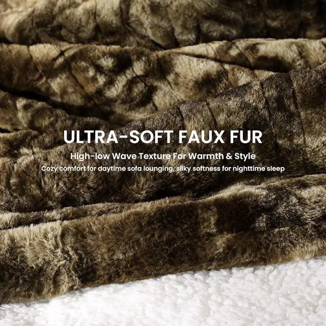 LUXURIOUSLY SOFT & FUNCTIONAL Plush Faux Rabbit Fur & Velvet: Crafted with 450gsm wave-textured faux rabbit fur, this blanket offers a luxurious, cloud-like appearance while creating fluffy air pockets that trap warmth and effectively prevent heat loss. On the reverse, 190gsm velvet provides a silky-smooth, skin-friendly touch, helping the blanket deliver comforting warmth to your body more quickly. The dual-fabric design blends elegant style with practical performance, making it both a chic décor accent and a reliable source of cozy comfort through every season.