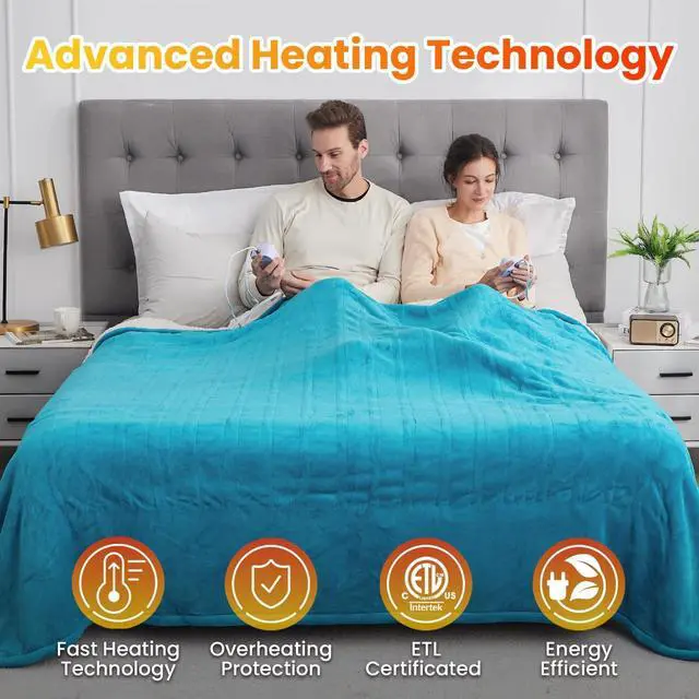 3. Superior Heating Technology: This 84"x 90" queen size electric blanket has built-in heating wires that are placed in U-shape patterns for even heat distribution; The fast heating technology offers you instant and even warmth on cold days