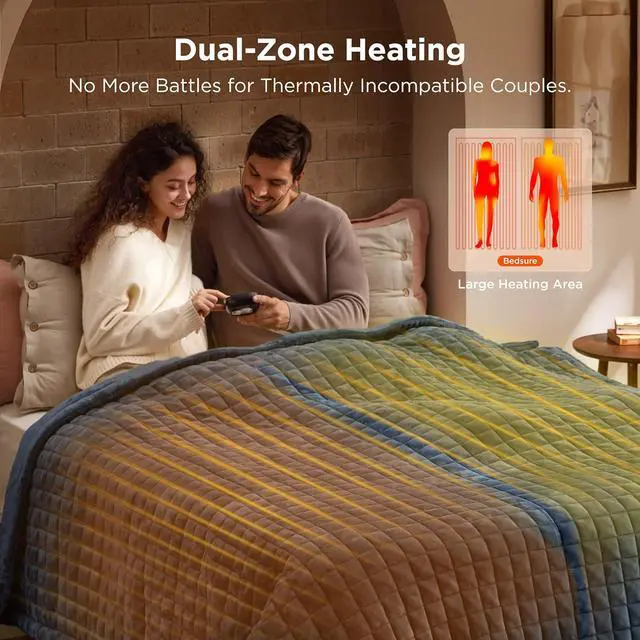 All-Night Warmth:This queen size heated blanket offers all the plush coziness of a comforter, combining the gentle weight of a blanket with PTC/NTC heating wires for fast, steady warmth. It envelops you in a snug, cocoon-like haven, giving a deep sense of security and cozy warmth throughout winter nights