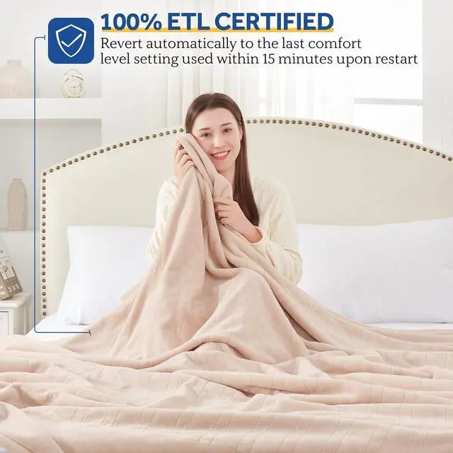 Pre-Heat and Comfort Level Memory : Our heated blanket with a pre-heat procedure for quick heat distribution when you turn on the warming blanket and revert automatically to the last comfort level setting used after 15 minutes upon restartallowing you to conveniently go back to your last comfort setting