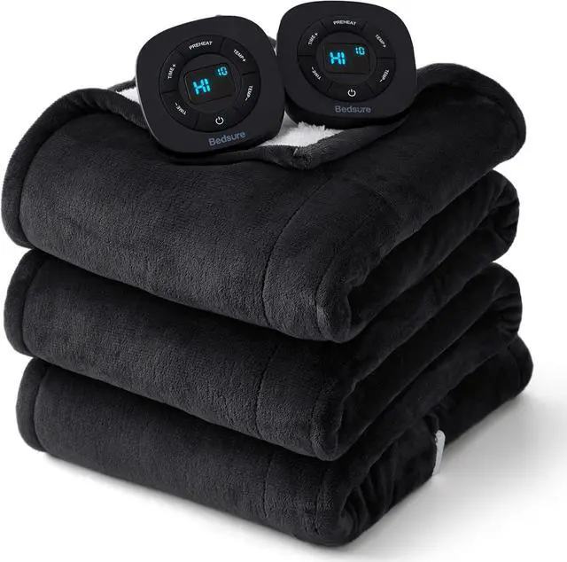 Bedsure Electric Blanket Queen Size - Dual Control Heated Blanket Queen, Fast Heating with 10 Time Settings & 10 Heat Settings, Warm Gift for Grandma (84x90 inches, Black)