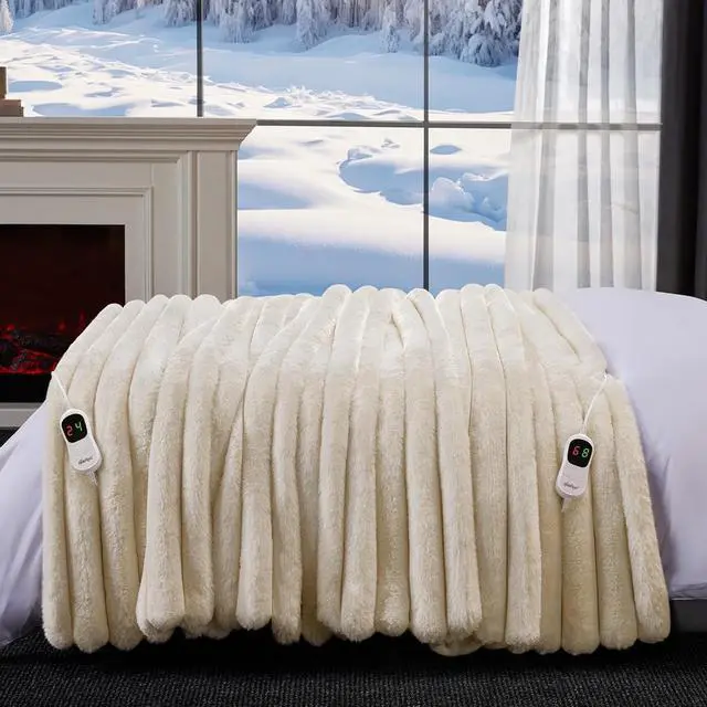 3. Soft Material - This soft heated blanket, crafted from 500 +200 GSM fluffy faux fur. Create a soft and luxurious feeling, provide a comfortable sleeping experience,and maintain warmth even on the coldest winter nights