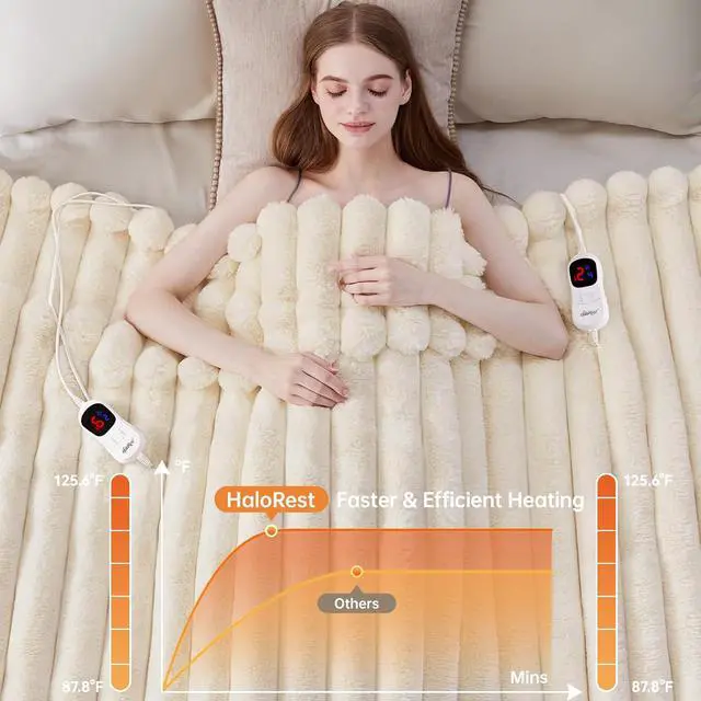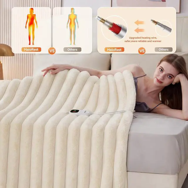 2. Safety You Can Trust HaloRest heating blanket is ETL and FCC certified, with overheating protection for reliable safety.Thin insulated heating wires can evenly dissipate heat and prevent short circuits and overheating, effectively avoiding safety issues