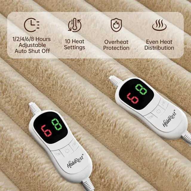 • Safety You Can Trust HaloRest heating blanket is ETL and FCC certified, with overheating protection for reliable safety.Thin insulated heating wires can evenly dissipate heat and prevent short circuits and overheating, effectively avoiding safety issues