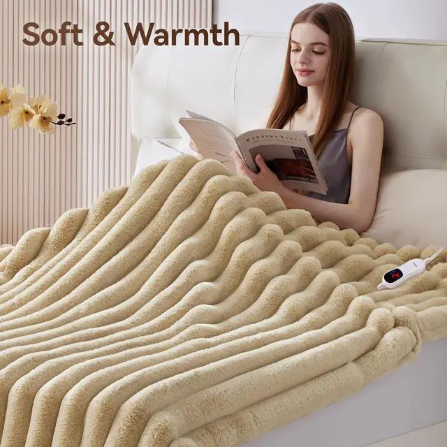 3. Soft Material - This soft heated blanket, crafted from 500 +200 GSM fluffy faux fur. Create a soft and luxurious feeling, provide a comfortable sleeping experience,and maintain warmth even on the coldest winter nights