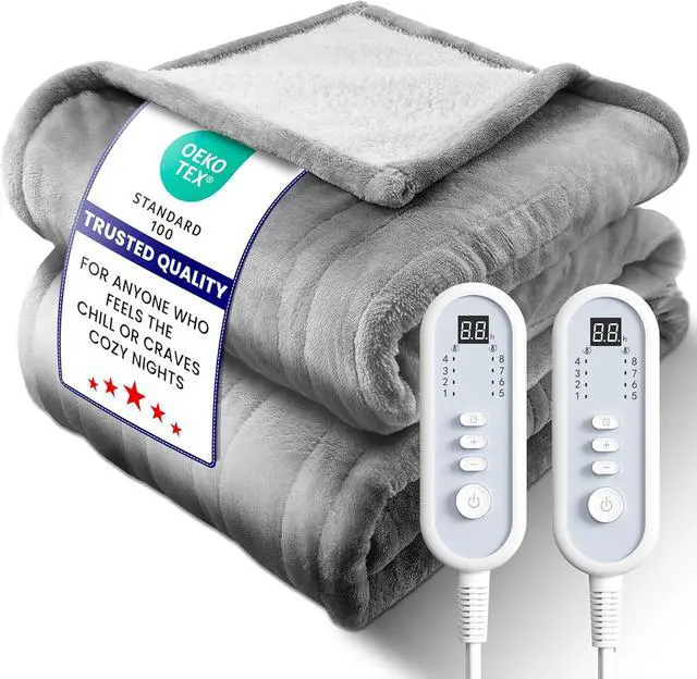 CUSTOMIZABLE AUTOOFF & ENERGY SAVING: Select from a 110 H autooff timer and 8 temperature settings to tailor warmth for every room and season. Operating at dual 120 W (120 V/60 Hz) controllers, these larger electric blankets deliver longlasting heat at a fraction of the energy cost of traditional heatingideal for bedroom, dorm, or family use.
