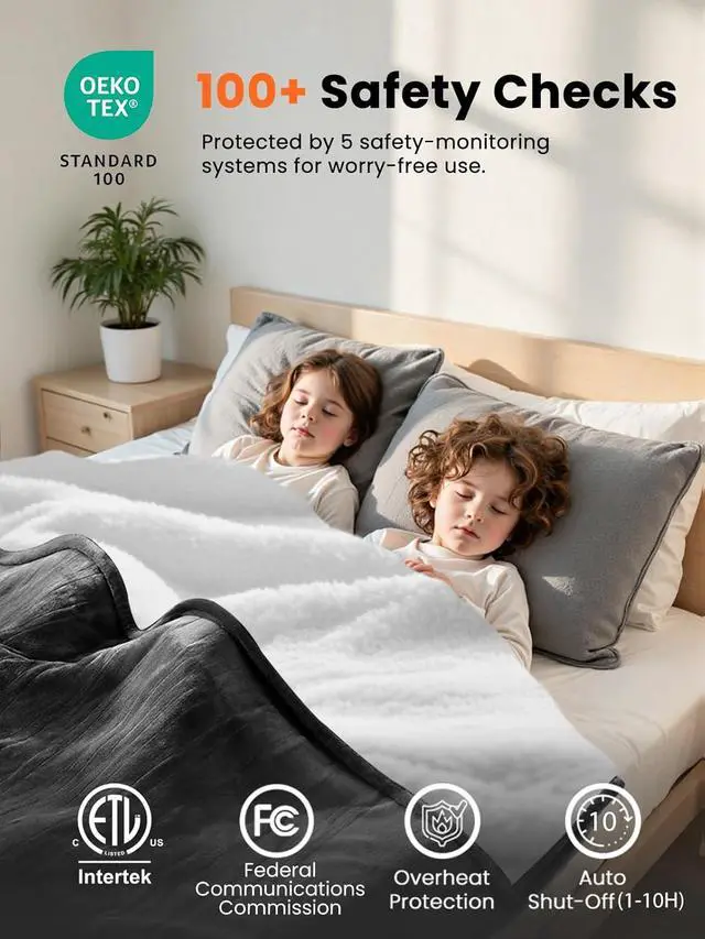FAST HEATING&PRECISE TEMPERATURE CONTROL: Fulllength 2.2mm PTC&NTC heating wire technology brings rapid warmup in minutes and maintains stable temperature across 8 heat levels (86125.6°F). Important Safety Instructions: This heated blanket is intended for adult use only (18+). Do not fold, bunch, or crease the blanket while in use. Do not cover the heated blanket with other bedding, quilts, or fabrics during operation. Improper use may result in abnormal heat buildup.