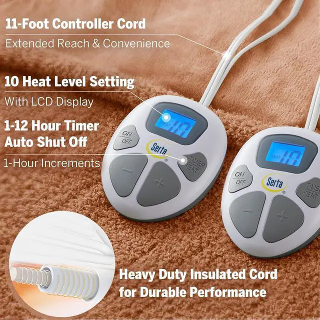 Easy to Use: This king-size (100x90") comes with dual controllers for personalized comfort, perfect for two. Its conveniently machine washable. Confidently carry 5 year warranty. DO NOT LEAVE CONTROLLER COVERED WHEN IN USED TO AVOID OVERHEATING