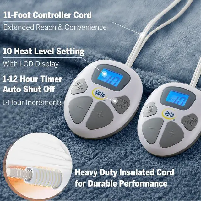 Energy Saving: Stay warm and cozy while keeping electricity costs low. Our heated throw offers targeted heating on individual without raising your entire home's temperature. SIZE QUEEN OR LARGER comes with 2 controllers