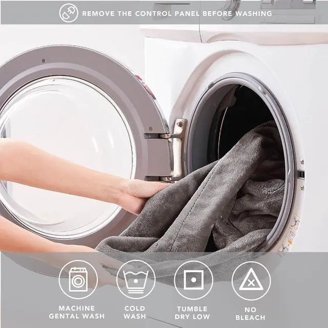SUPER SIMPLE TO WASH: Just disconnect the controller and power cables and simply throw the entire heating blanket into the wash. Use cold water, on a slow cycle. Then toss it in the dryer on low heat or let it air dry. Stays silky soft after many washes.