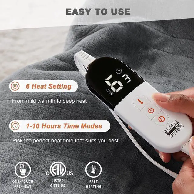 ADJUSTABLE AUTO SHUTOFF IN 1 HOUR INCREMENTS: NEVER WORRY again about overheating or falling asleep with your heated throw still on. With a 1 to 10 hour adjustable timer this safety feature to KEEP YOU SAFE and give peace of mind so you can fully relax.