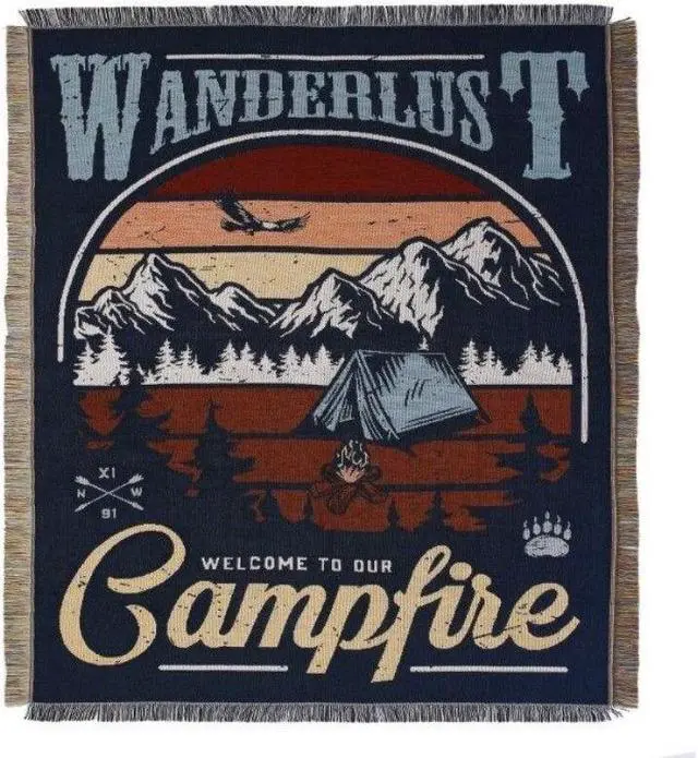 Anyhouz Wanderlust Campfire Throw Blanket Cozy Sofa Couch Bed Cover Tapestry with Tassel