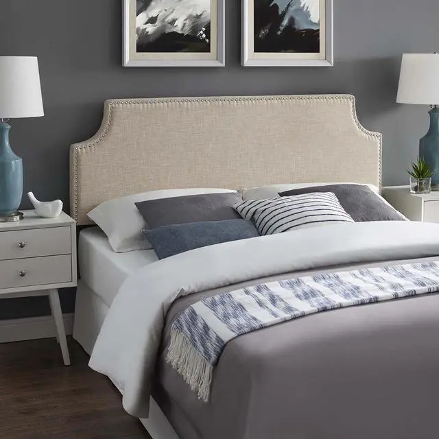 LUXURIOUS DETAILS - A unique shape and timeless accents make Laura a true statement piece. Decorated with nailhead trim that lines the frame, this queen size headboard showcases sleek, cut out corners