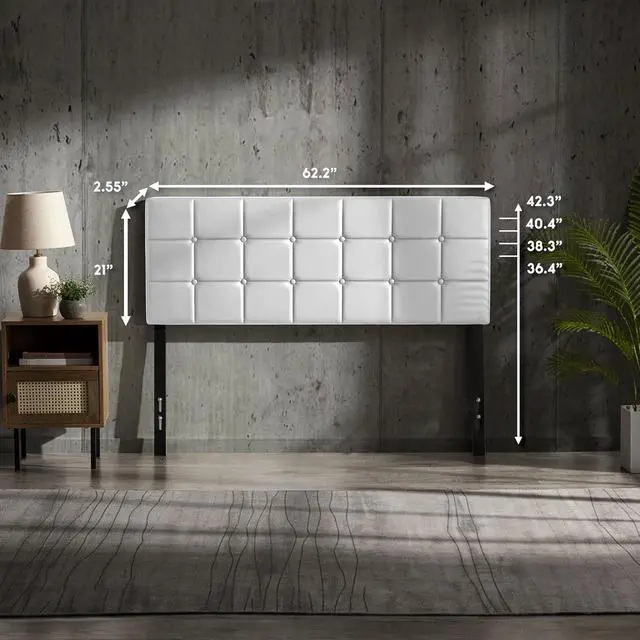 Button-Tufted Square Design: This queen headboard only is upholstered with faux leather in an elegant design that will transform your bedroom. Our plush, supportive queen bed headboard is perfect for leaning on while relaxing in bed.